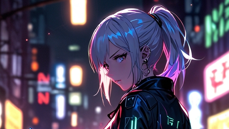 Step into a neon-lit future with this stunning AI-generated Cyberpunk Girl wallpaper!